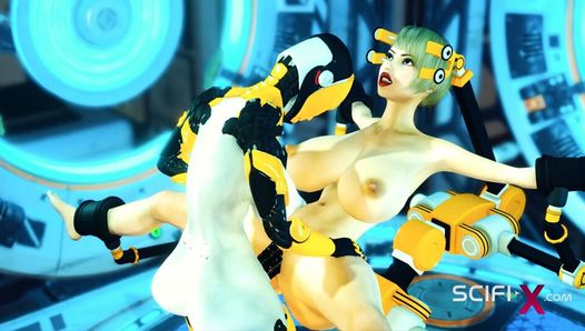 セックスふたアンドロイドの新バージョン。エッチでキュートな若いブルネットがペニスをしゃぶって犯される